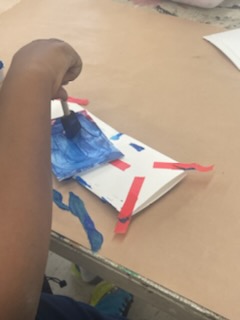 Above: Paterson School 21 Students create prints in the hands-on workshop given by Nadia Estela inspired by themes in the art exhibition.
